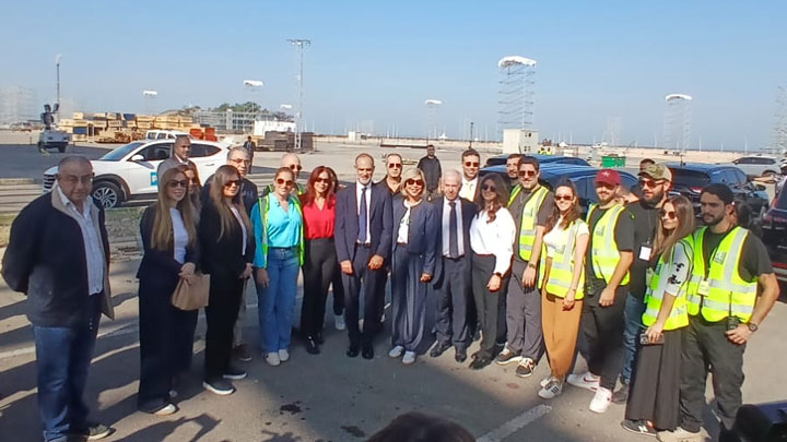 ومن ثمّ انطلق الإعلاميّون والمشاركون في الجولة الميدانيّة، بواسطة باصين للنّقل المشترك، إلى ساحة بيال بيروت، حيث استقبلتهم السّيّدة الأولى نعمت عون ووزير الأشغال العامة والنقل فايز رسامني.