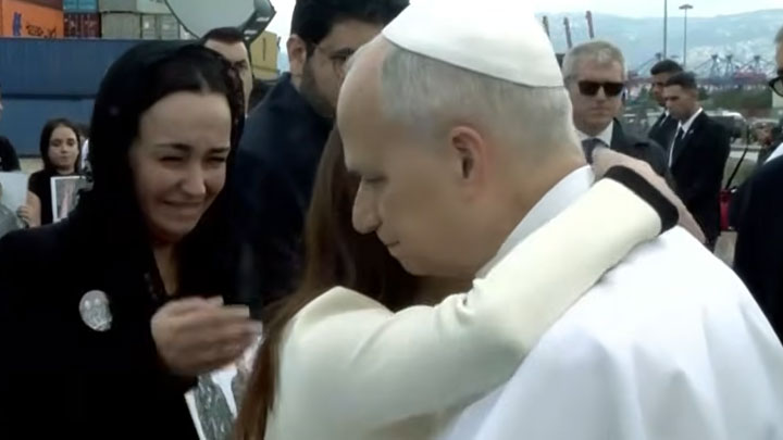 وقف البابا في حضرة الألم مصغيًا إلى ألم من حضر من الأهالي حاضنين صور أحبّائهم، مصافحًا ومعانقًا ومبلسمًا جراح كلّ من لجأ إليه، الكبير كما الصّغير.