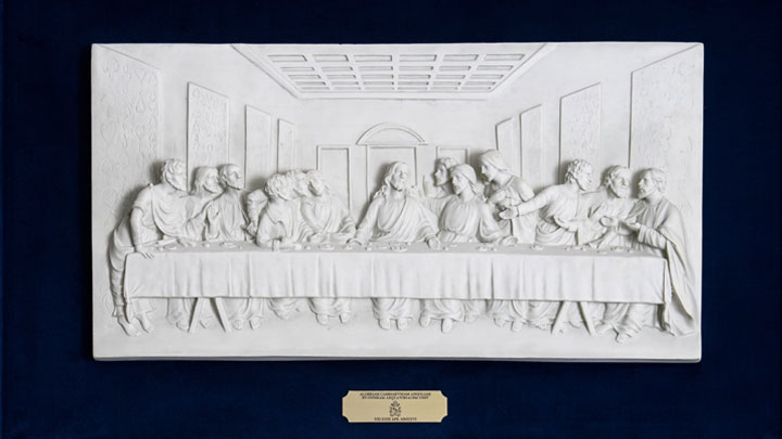 أمّا إلى رهبان القدّيس أوغسطينوس الّذين التقاهم الثّلاثاء في عنابة، فقدّم لوحة العشاء الأخير (المصنوعة من بودرة الرّخام)، للتّذكير بسرّ الإفخارستيّا ونداء عَيش الشّراكة الأخويّة.